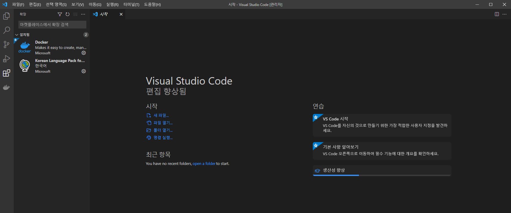 이와 같은 파일을 만들었다면 이것을 드래그해서 VSC에 끌어다 놓아보자.
